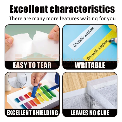 N'optez pas pour un ruban masquant de qualité inférieure - choisissez le ruban adhésif en papier crêpe personnalisé HWK’s Factory et découvrez par vous-même la différence. Améliorez vos routines de masquage et de peinture avec ce ruban polyvalent et fiable de Hongwangkang